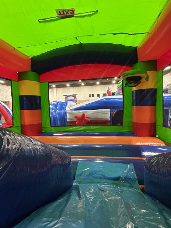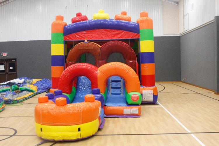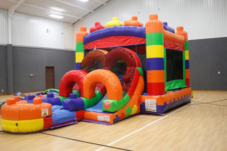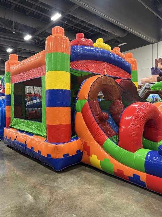 Bright, colorful, and built for nonstop fun, the Block Combo is a kids’ inflatable play attraction that combines a roomy bounce area with dual lanes for climbing and sliding into a small splash/landing pool.