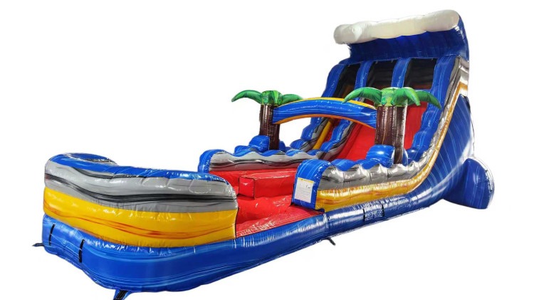 Make a splash with the Blue Lagoon Dual Lane, a vibrant, tropical-themed inflatable water slide built for side-by-side races and nonstop backyard fun; its twin lanes let two riders climb and whoosh down simultaneously into soft splash pools, while decorative palm trees and wave-like accents give every event a beach-party vibe—perfect for birthday parties, family gatherings, or neighborhood block parties where excitement and friendly competition are the order of the day.